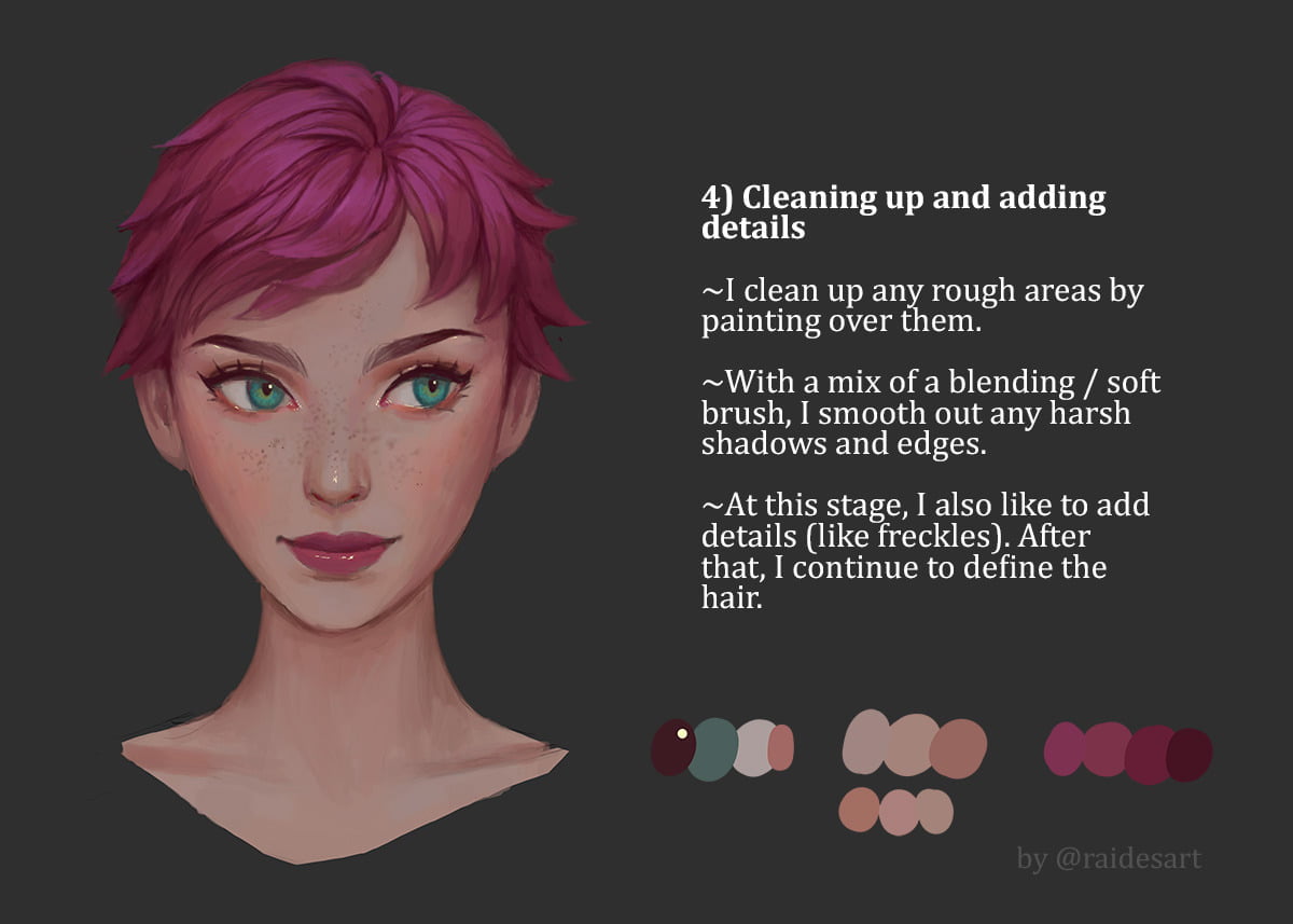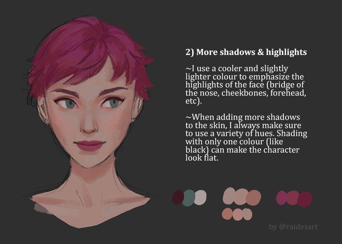 – Khi thêm bóng cho da, dùng đa dạng sắc độ, để trông nổi khối hơn.